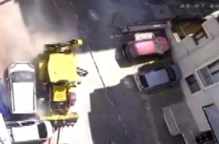 Kocaeli'nin Gebze ilçesinde, yokuş aşağı sürüklenen bir kepçe, park halindeki araçlara çarparak bir binanın...