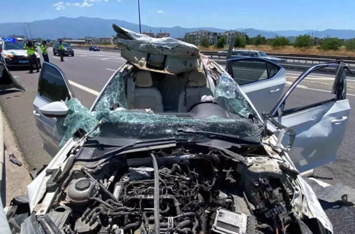 Kocaeli'de TEM Otoyolu'nun geçişinde bariyere çarpan arabanın tavanı koptu. Tıpkı aileden 4 kişi yaralandı.