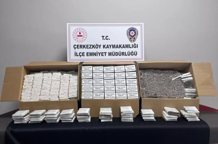 Tekirdağ'ın Çerkezköy ilçesinde, tütün ve tütün mamulleri kaçakçılığıyla gayret kapsamında yapılan operasyonda bir araçta...