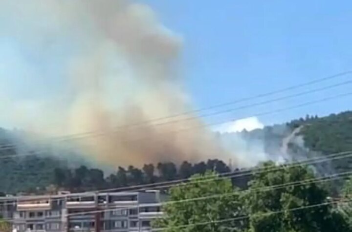Kocaeli'nin Derince ilçesinde, Yenikent Mahallesi yakınlarındaki makilik ve ağaçlık alanda çıkan yangın için itfaiye...