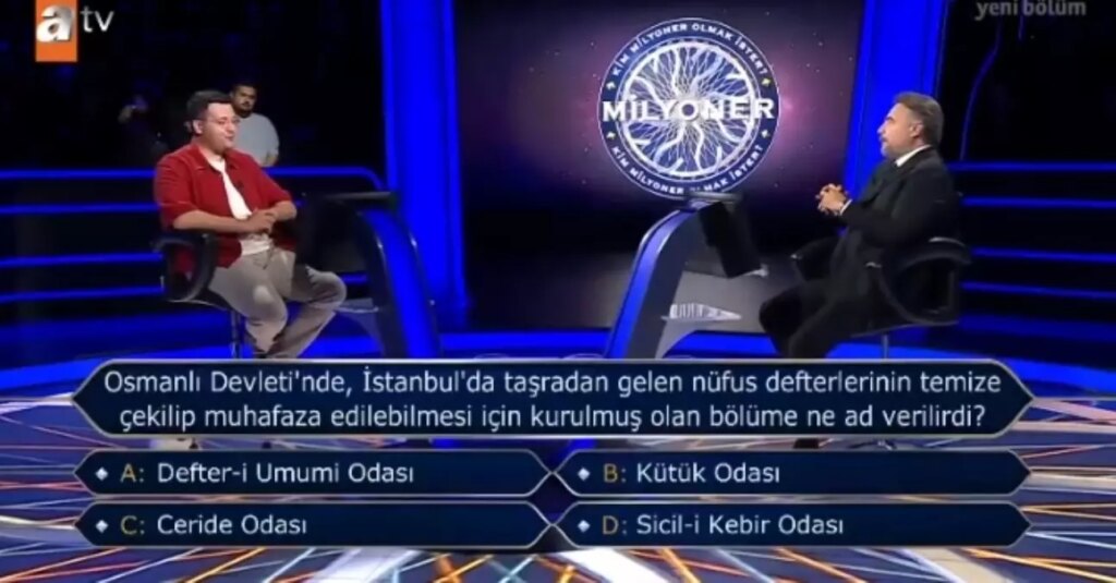 Yeni kısımda yer alan sorular, izleyicide büyük bir merak duygusu yaratıyor. Yarışmacının kararını bekleyen izleyiciler, bir yandan da kendi bilgi seviyelerini sınayarak yanıtı araştırıyor. Keyifli ve öğretici bir tecrübe sunan Kim Milyoner Olmak İster, ekran başındakilerin kendilerini yarışmacının yerinde hayal etmelerine imkan tanıyor. Pekala, Osmanlı Devleti’nde, İstanbul’da taşradan gelen nüfus defterlerinin paka çekilip koruma edilebilmesi için kurulmuş olan kısma ne isim verilirdi?