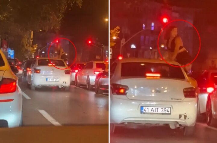 Bağdat Caddesi'nde hareket halindeki bir aracın camından sarkarak twerk yapan genç bayanın manzaraları reaksiyon...